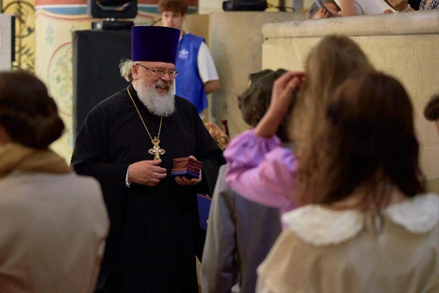 Благодарственный молебен у мощей святителя Филарета возглавил иеромонах Онисим (Бамблевский), председатель Отдела религиозного образования Московской епархии в сослужении духовников православных школ. В своём напутственном слове он обратился к выпускникам с важными словами: пожелал бережно хранить духовные традиции, использовать свои таланты на благо Родины и не забывать о богатом культурном наследии страны.
