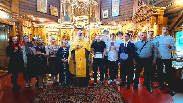 Перед молебном батюшка обратился к ученикам с напутственным словом, поздравив их с окончанием 9-го класса и напомнив о важности благодарности в жизни человека.